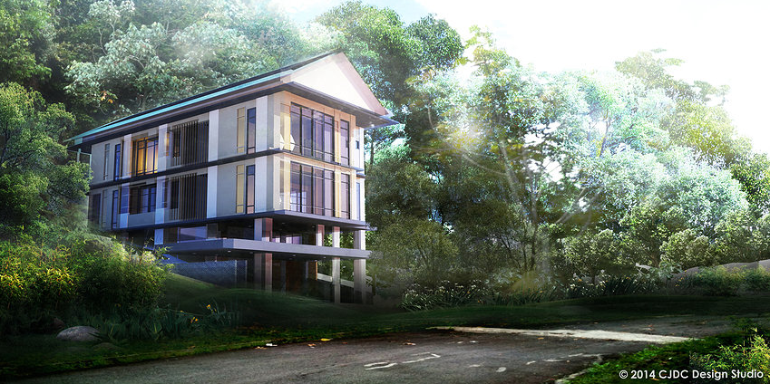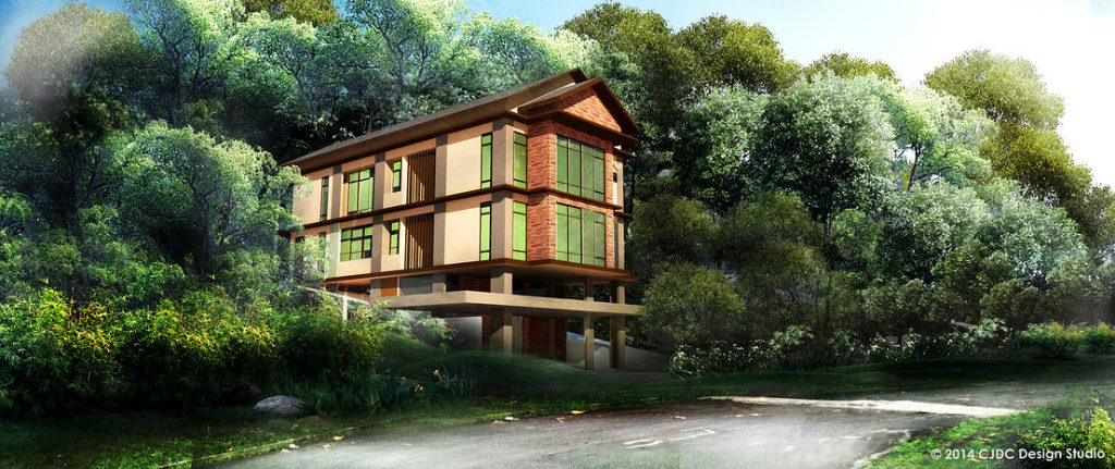 That is up to you……The house, which will be built for you on the land you purchase, can be up to three-stories high. This includes ground floor parking. The house will be built on a hill surrounded by nature, leveraging off a green view. The pictures below are suggested plans for a three-storey bungalow.