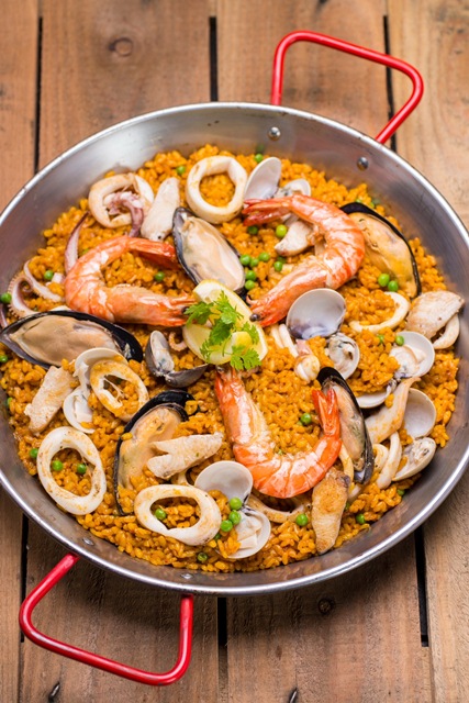 This aromatic saffron rice dish is cooked with a combination of white bomba or calasparra rice, saffron, bay leaves, garlic, paprika and olive oil. Vegetables and protein is also added to complete the dish. The protein aspect usually consists of fish, shrimps, squids, duck, clams, rabbit, pork, chicken and snails. Among the many versions available today, the three main paella dishes are; the Valencian paella; the seafood paella; and the mixed paella.