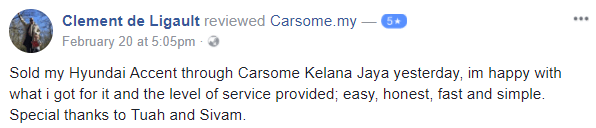 So thank god for Carsome! When it comes to fast and transparent selling of cars, Carsome has proven to be one of the best options and a choice for many, for both expats and locals. Not only is it hassle-free with paperwork, it also ensures that both the buyer and seller get the best price for the vehicle. We’ll let the comments below speak for itself.