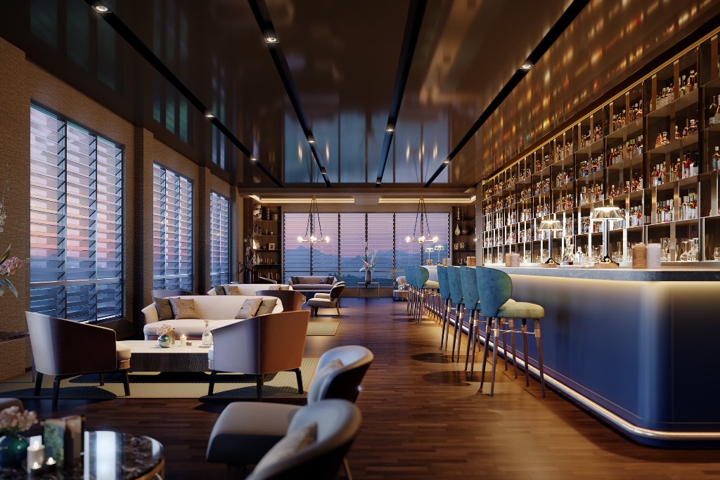 The resort facilities and services, meanwhile, go far beyond expectations, and include concierge services, a heated swimming pool, sauna, jacuzzi, steam room, a state-of-the-art gymnasium, café and dining spaces, a fully equipped co-working business centre, a 350-seat banquet hall, a rooftop Sky Lounge and sunrise/sunset exercise decks, library, mini cinema, community-wide Wi-Fi, and more. Even weekly housekeeping and plant care services are included!