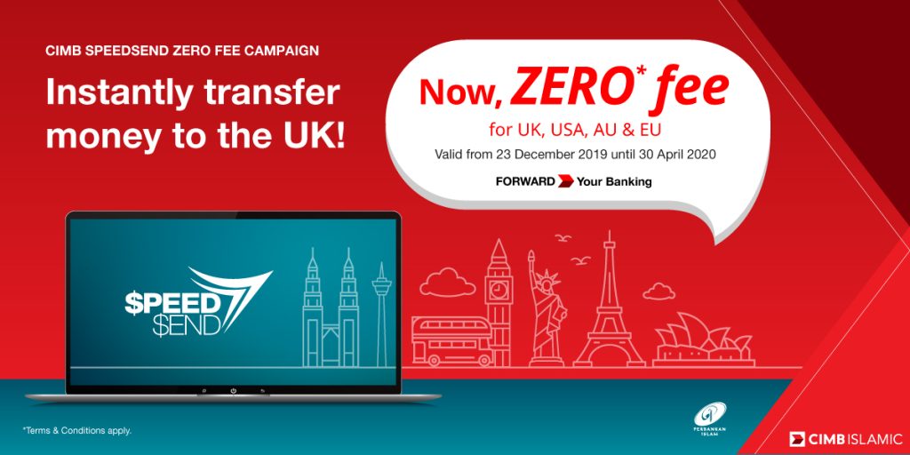 Via CIMB’s SpeedSend Zero Fee campaign (running from now until the 30 April 2020), enjoy the convenience of transferring money to the UK, USA, Australia, as well as twelve other European countries with zero fees. The recipient is guaranteed to receive the full amount!