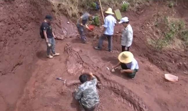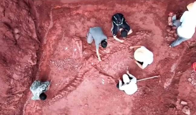 Close to the end of May, as soon as the remains were discovered, officials from the Dinosaur Fossil Conservation and Research Center set to work to carefully excavate the skeletal structure to prevent any further damage to the precious find.