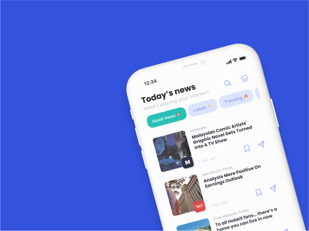 With a curated list of local publishers the likes of New Straits Times, Free Malaysia Today, Berita Harian, Harian Metro, SAYS, The Rakyat Post, Cilisos, SoyaCincau, CCN 精彩大马, The Malaysian Reserve, Bernama, IGN Southeast Asia, Mashable Southeast Asia, and more, the app serves positively inclined stories to boost optimism.