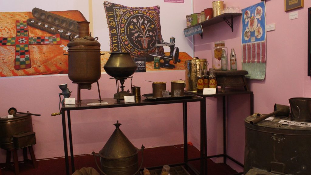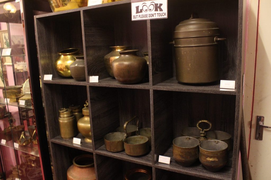 A typical living room setup got me into a distant memory as it brought the experience several generations to mind. Vintage television and radio, South Indian Hero MGR’s figurine, wooden chairs, and a children’s toy horse — the kind my grandmother used to talk about. Other eye-catching collections are Burmese lacquerware from the 1900s, as well as enamel ware and pails made in Czechoslovakia (Slovakia and the Czech Republic today).