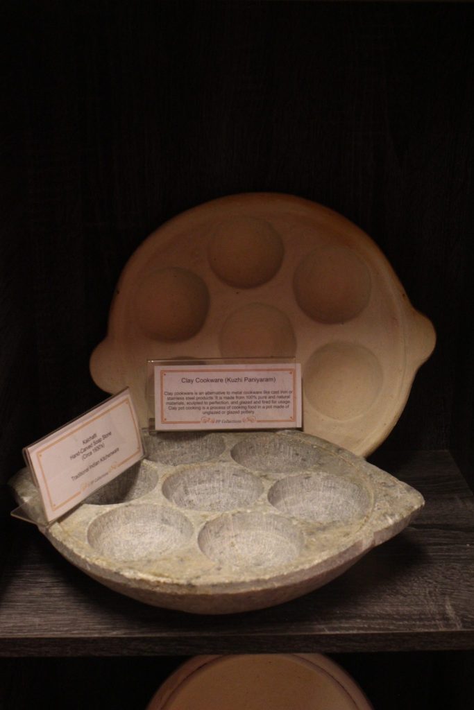 Add to that granite grinding stones, spice jars, and a vast collection of clay-made items used for both cooking and prayers. It is impossible not to give a second look at the coconut grater especially.
