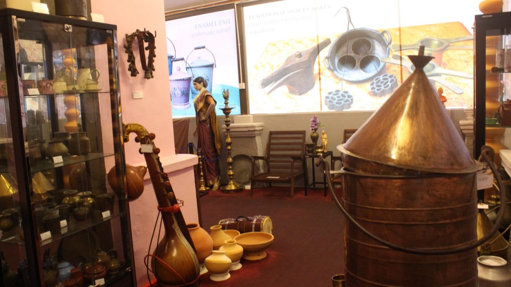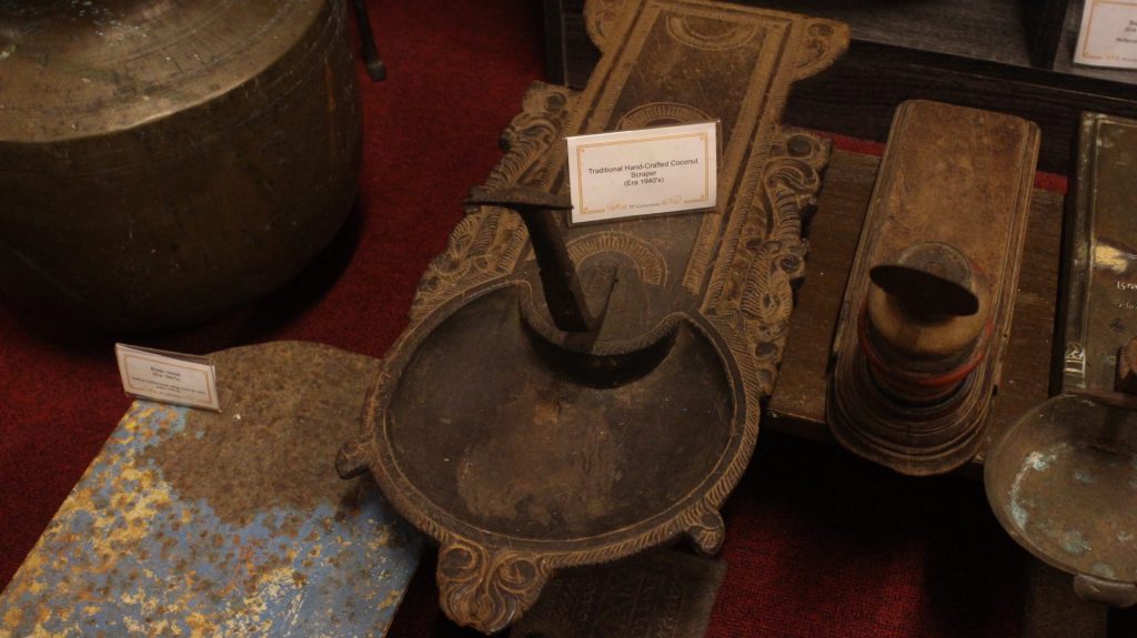 Further inside the gallery, you will find appliances and instruments that lapse over several generations. Noteworthy items are the cast iron hand water pump, Tamil Typewriter, hand-crafted coconut scraper, sewing machines and Copper Heaters named “Vemba” – vertical cooper boiler from the early 1930s that requires coal ambers at the bottom.