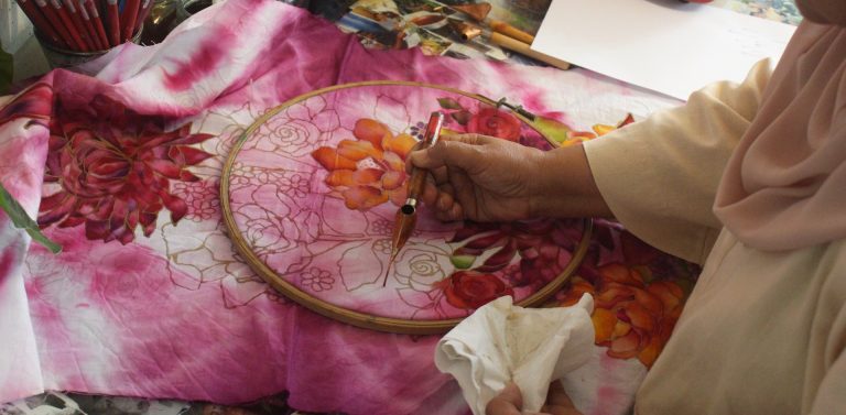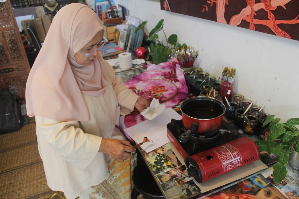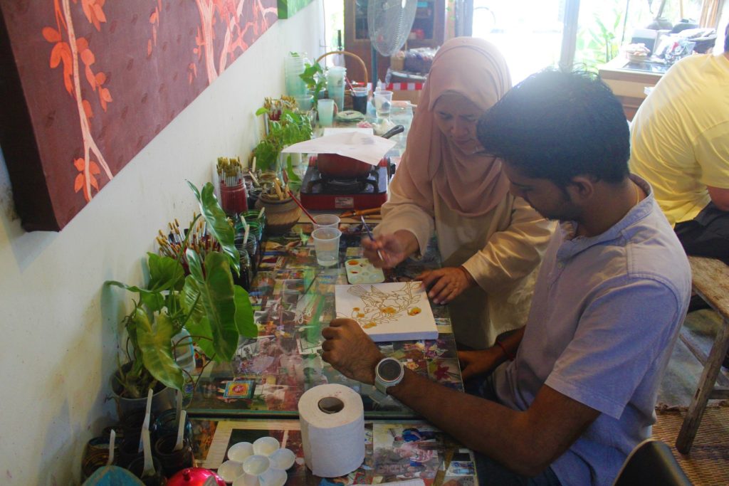 Named after the owner herself, Rozana’s Batik began 12 years ago. Having completed her education in Fine Arts from UiTM and packed with passion for the craft, Rozana had ideas for an authentic workshop from the early days and set out to make it a reality. In the beginning, the space was only used as a studio to exhibit her batik works. However, once George Town earned its UNESCO World Heritage Site status in 2008, traditional arts were no longer a niche. She tells me – with a palpable triumph – that participants head home with much respect for batik after understanding the culture, composition, and philosophy behind it.