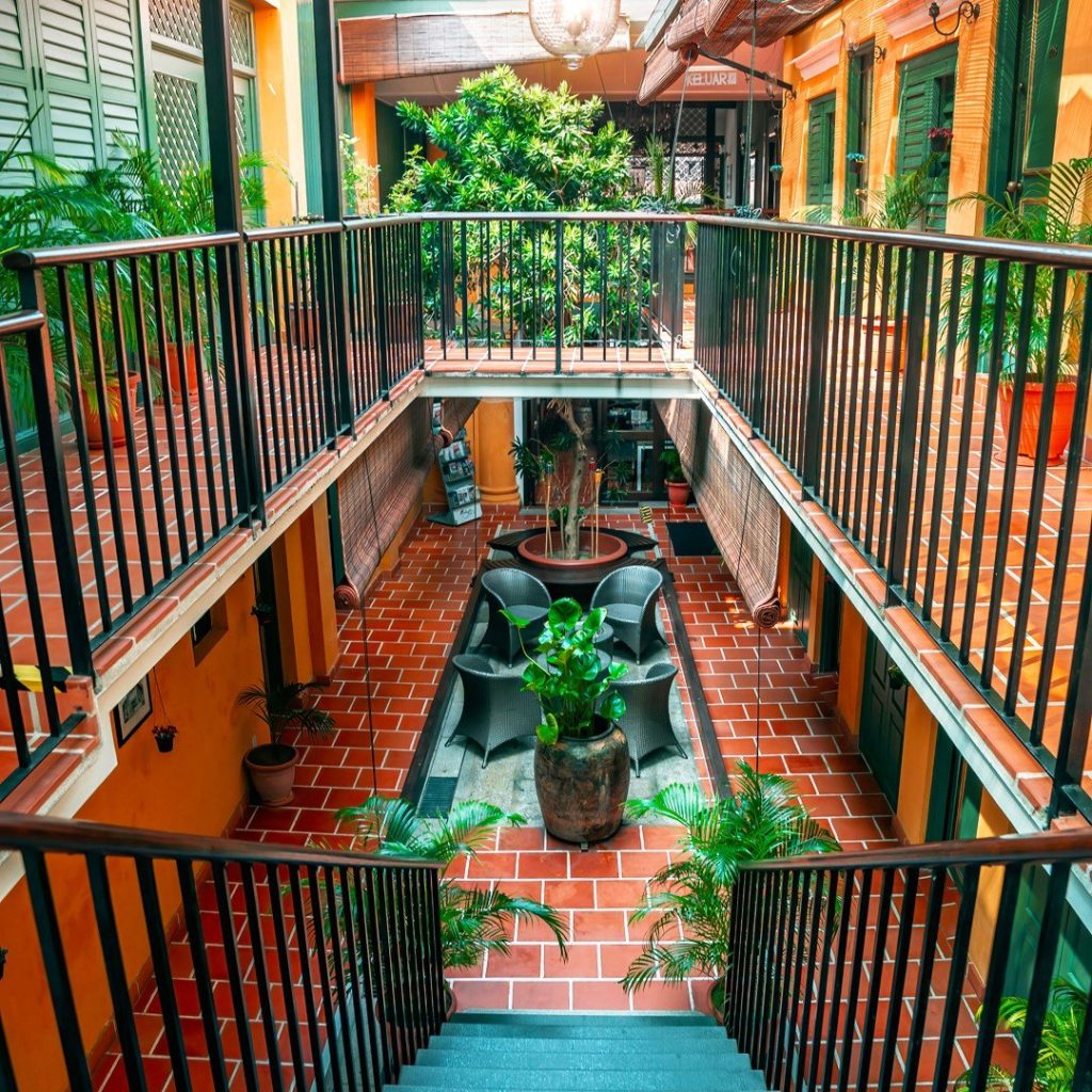 Chulia Street’s neighbourhood often keeps hopping well past midnight with energy with its mixture of cafes and street food. As you drive down the road, Yeng Keng Hotel catches your attention with a rather tranquil tempo. This building was an Anglo-Indian bungalow in the 1800s; these days, it’s been meticulously restored and upgraded with 19 rooms and suites. The Chinese Wu-Dian-roofed entrance, hanging lights, and Chinese characters give the feel of entering a different era. The patio is huge, flanked by well-landscaped botany. On the inside, bright red and yellow colours, gilded frames, floral motifs on walls, and hardwood floors score high on the aesthetic scale. Plants of various shapes and sizes inject a breath of fresh air, allowing the open spaces to blend seamlessly around the property. The hotel’s ability to remain as an oasis of solitude amid such a happening area makes it an ideal spot for those seeking the best of both worlds.