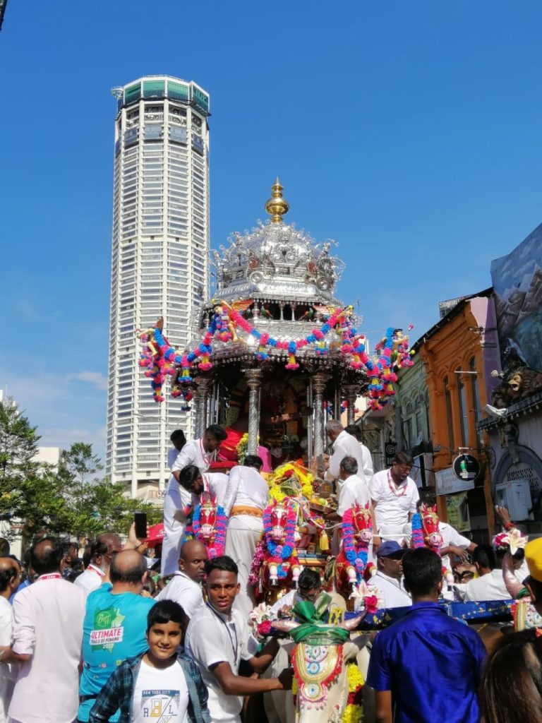 The most noteworthy part is the coconut-breaking ceremony. Arranged in pyramid-like shapes, thousands of coconuts are smashed along the streets right before the chariots. In some locations, Chinese lion dance performances are carried out before the chariots as a gesture of respect from the local Chinese.