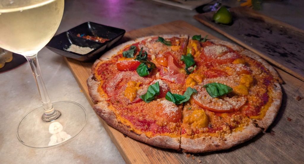 The latter choice, however, which is supposed to be a vegan take on the venerable Margherita pizza, was a bit of a mixed bag. Vegan cheese doesn’t quite seem to fully mimic the properties of dairy cheese, and since this actual pizza really only has three ingredients to begin with (tomatoes, basil, and mozzarella), it’s hard to pull it off without one of them. A shower of cashew-derived parmesan was a nice touch, though, and we give props to the freshness of the tomato.