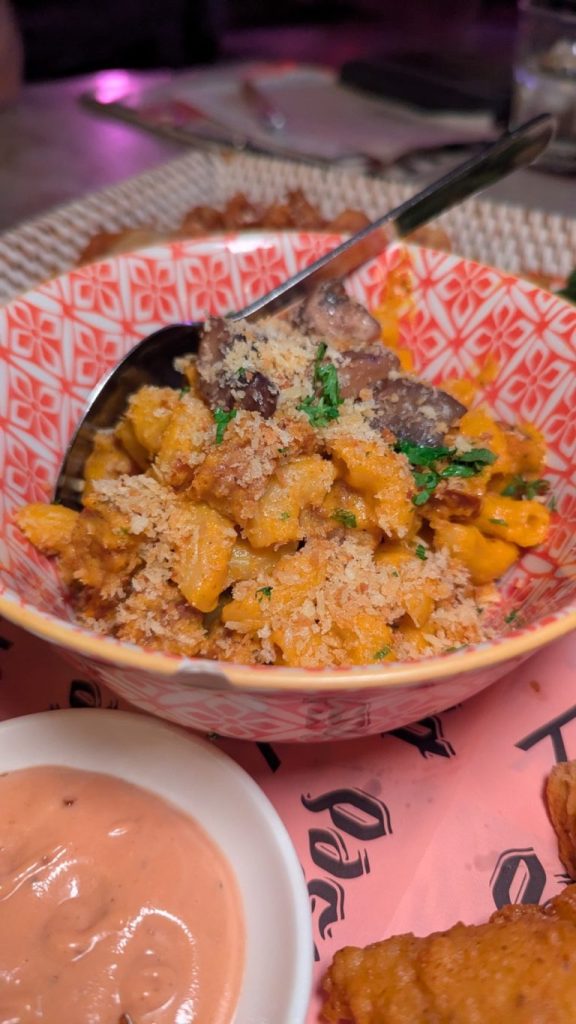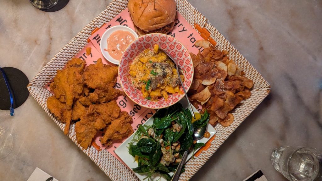 There was quite a bit on the menu which interested us, honestly speaking, so after these two starters, we just opted for a platter that included a good variety. Our choice was the ‘Soul Food Platter’ (RM90), which came piled with Fried Cheeken, Pink Bombshell Burger Sliders, Truffle Baked Mac-No-Cheese, Roasted Cauliflower and Pumpkin Salad, and Homemade Crisps. This was plenty for at least three people (perhaps more if another dish were ordered), and we loved it.