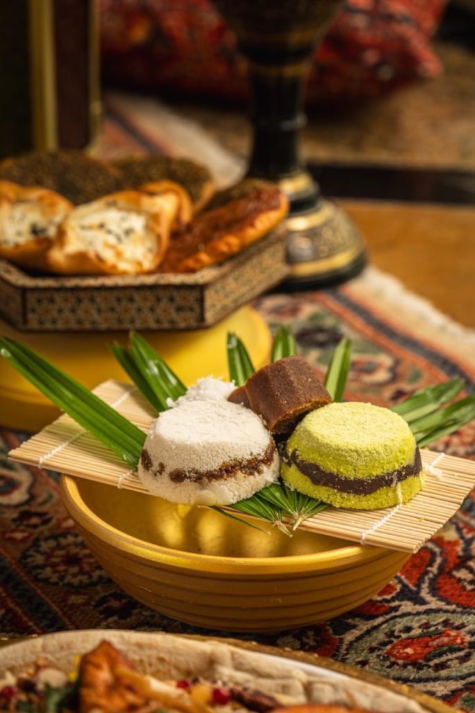 Beyond the savoury offerings, the dessert station is a paradise of traditional sweets, perfect for ending the meal on a high note. Indulge in Qatayef, Middle Eastern stuffed pancakes filled with nuts and cream; Putu Bambu, soft pandan-infused rice cakes; and an array of colourful kuih-muih. Complementing the feast are refreshing drinks, including Jallab, a date and grape molasses beverage, and a selection of tropical fruit juices.