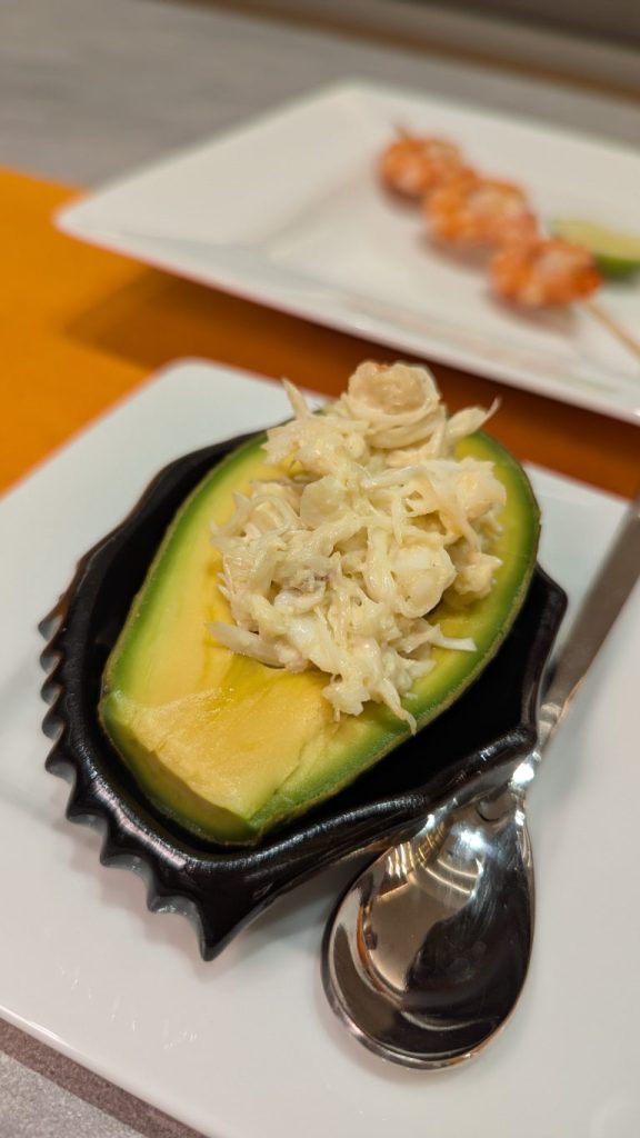We started with the Crab Liver Paté (RM75), a rich, indulgent and umami-forward spread served with thin squares of melba toast and enhanced (if desired) by kithul treacle syrup. Limited portions of the paté are available daily, as it takes the livers from six crabs to make a single serving. This is a signature dish, and though it may not tickle everyone’s fancy, we liked the concept and the presentation. We also thoroughly enjoyed the delicious Avocado Crab Salad (RM48), with hand-picked sweet crab meat folded with a mild wasabi mayo and loaded into half of a perfectly ripe and creamy avocado.