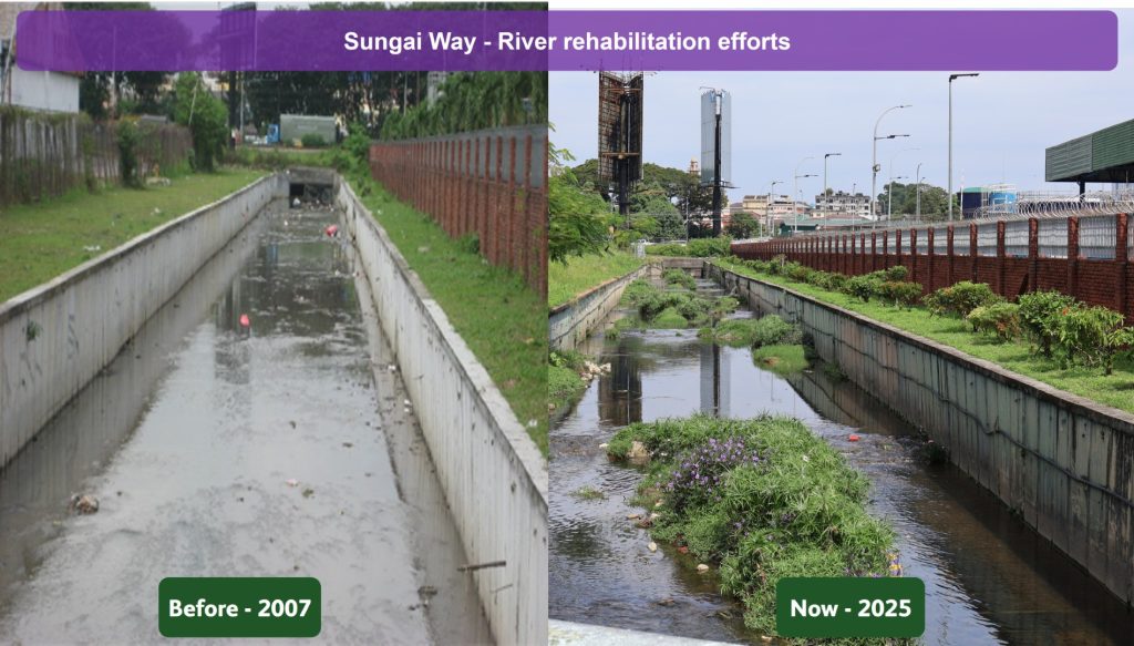 One of the most notable outcomes is the rehabilitation of the Sungei Way River. Previously classified as heavily polluted at Class IV–V, the river has improved to Class III, enabling it once again to support aquatic life. This shift represents sustained, on-the-ground engagement rather than short-term intervention.