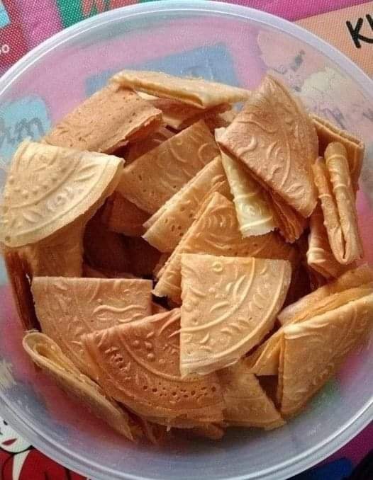 Kuih kapit is another festive favourite. Families sit together, pouring batter made of egg, coconut milk, sugar, and flour into special moulds, folding them elegantly into quarters while still warm. Often called “love letters,” these crispy snacks resemble rolled-up handwritten notes from days gone by.