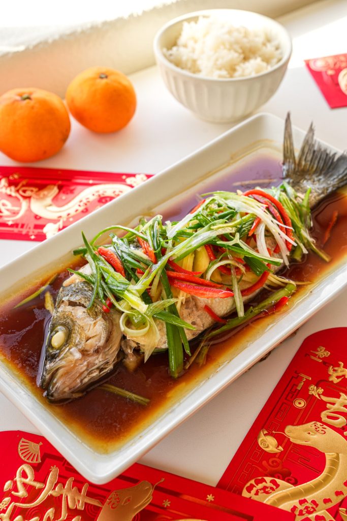 Whole steamed fish is a culinary staple for Chinese New Year. Sizzling over a clear broth with head and tail intact, Cantonese tradition considers a whole fish a symbol of a good beginning and ending for the year. For optimal satisfaction, the fish needs to be as fresh as possible, and cooking must be immaculately timed, or, as the Cantonese say, “just cooked.”