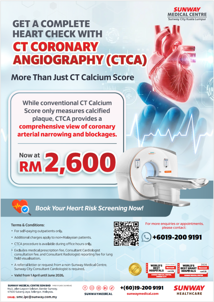 Schedule a heart health check with our Consultant Cardiologist at Sunway Medical Centre, Sunway City if you have any symptoms or concerns about your heart today.