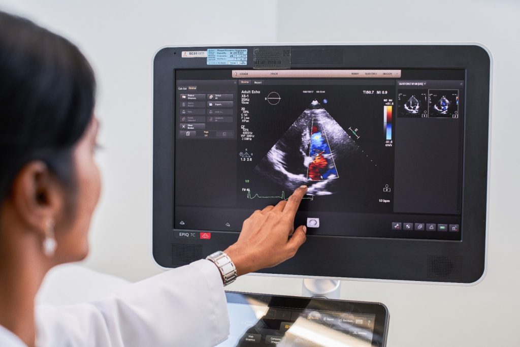 - Echocardiogram: A scan that uses sound waves to look at the heart and nearby blood vessels.