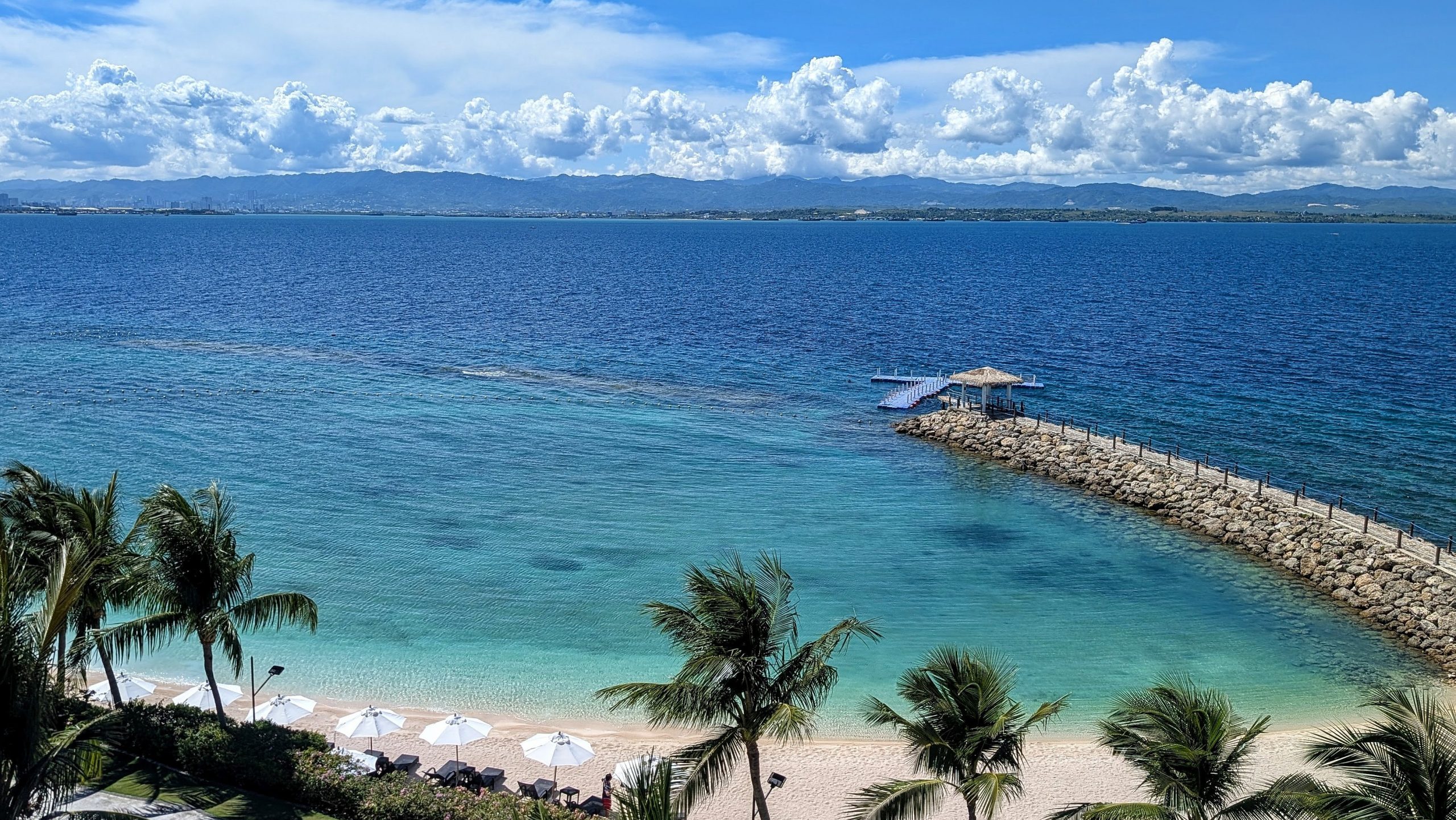 We recently stayed at the sprawling Dusit Thani Mactan Cebu Resort, located on the northeastern tip of Mactan Island, called the Punta Engaño Peninsula. This favoured location means guests enjoy the beautifully clean waters of Magellan Bay, white sands, and lovely views across the water to Cebu City and the mountains beyond.