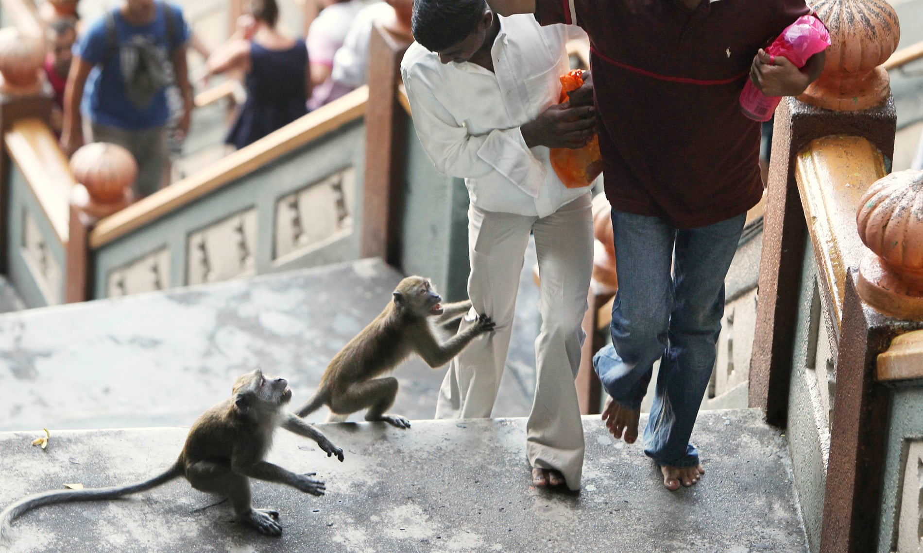 This particular species of monkey is well-known for their cheekiness and even aggression when things don’t go their way. The macaques at Kuala Lumpur’s Batu Caves, for instance, are quite infamous for their nasty dispositions and quick tempers, and the aggrieved males in particular will not hesitate to bare their fangs or even lunge at people.