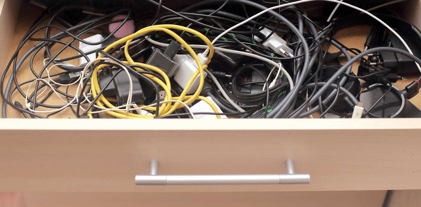Old phone chargers and cords: Collect and recycle old phone chargers, cables, and cords at an electronics store, or inquire about proper disposal options. This also applies to remote controls that… well, don’t control anything any longer.